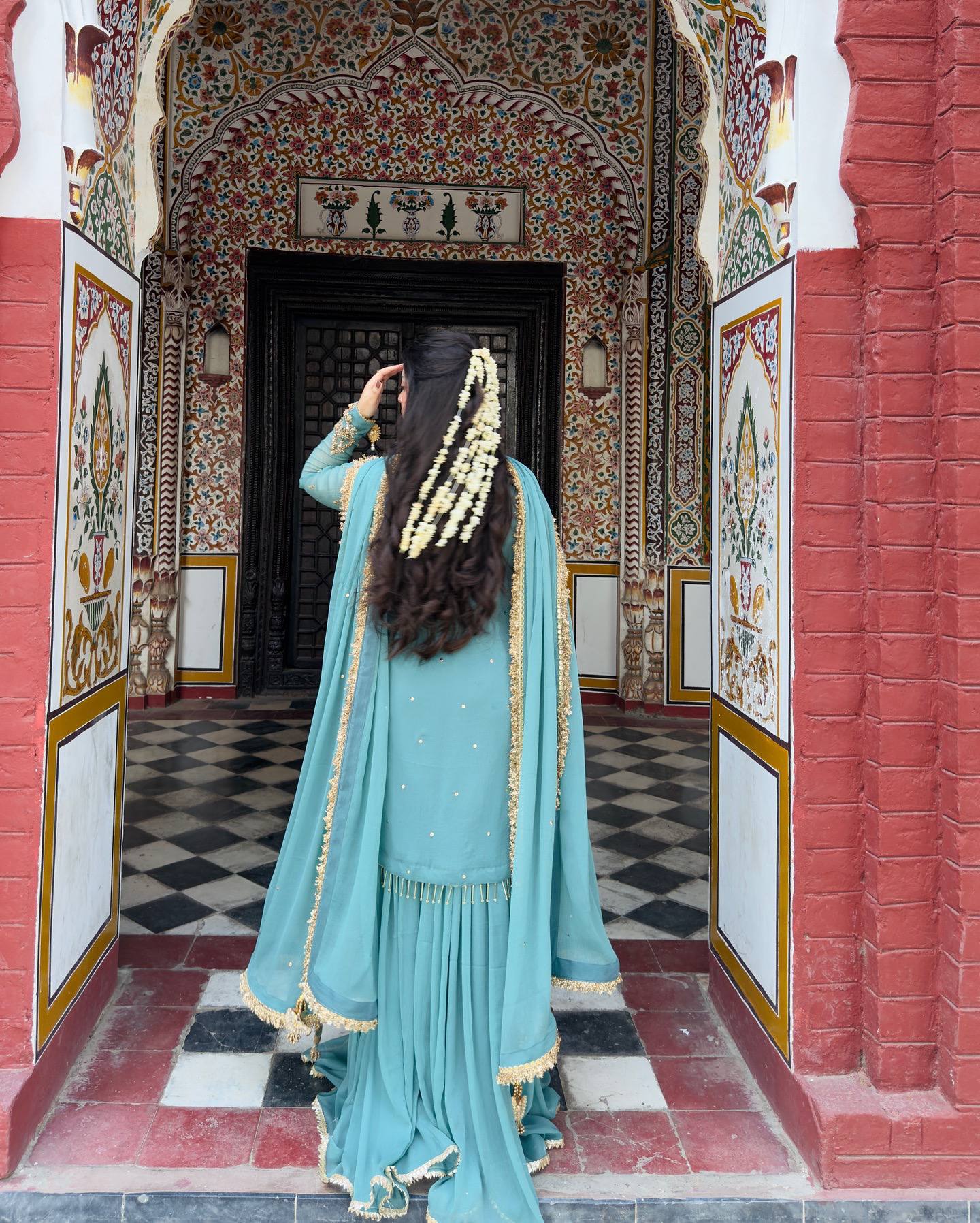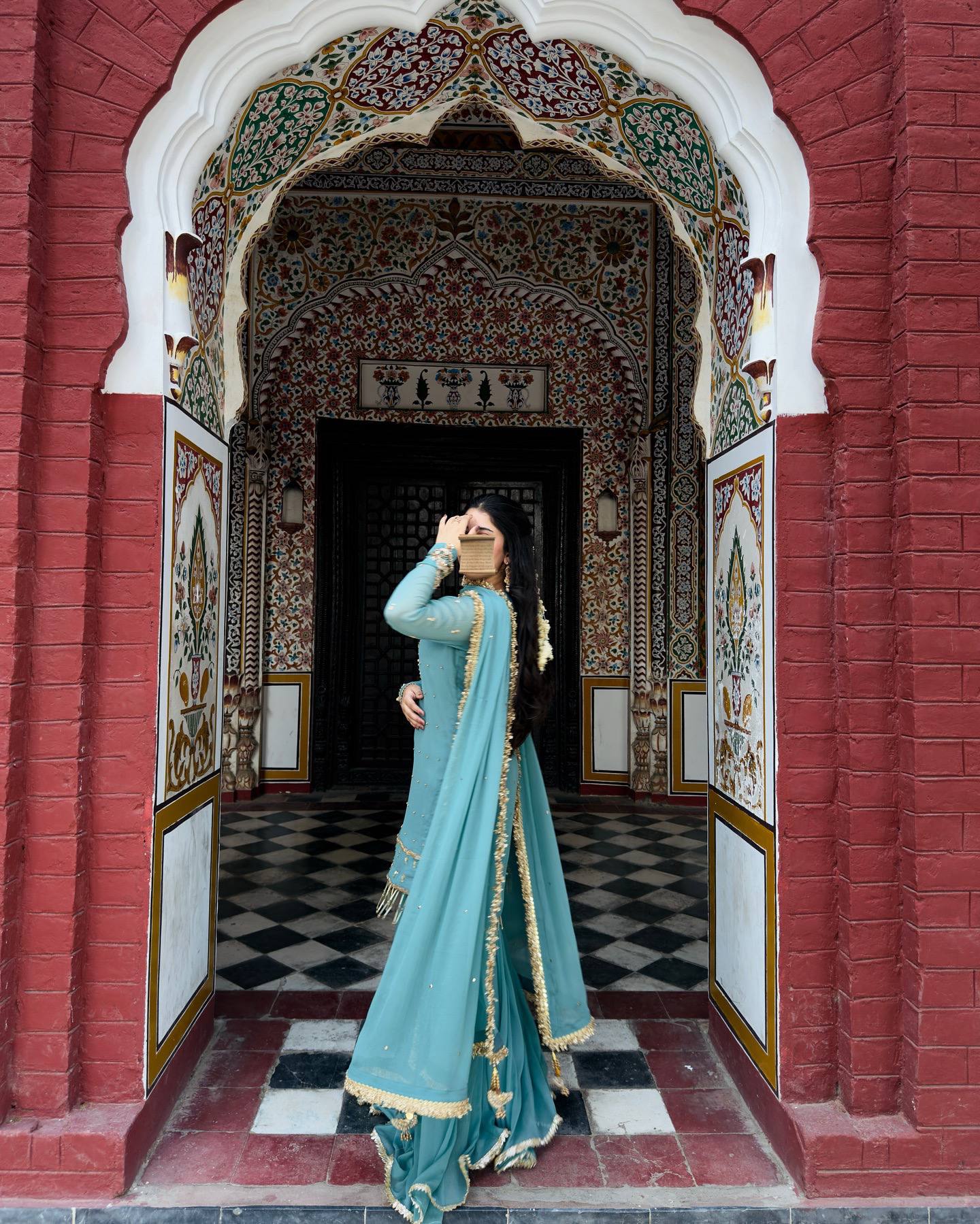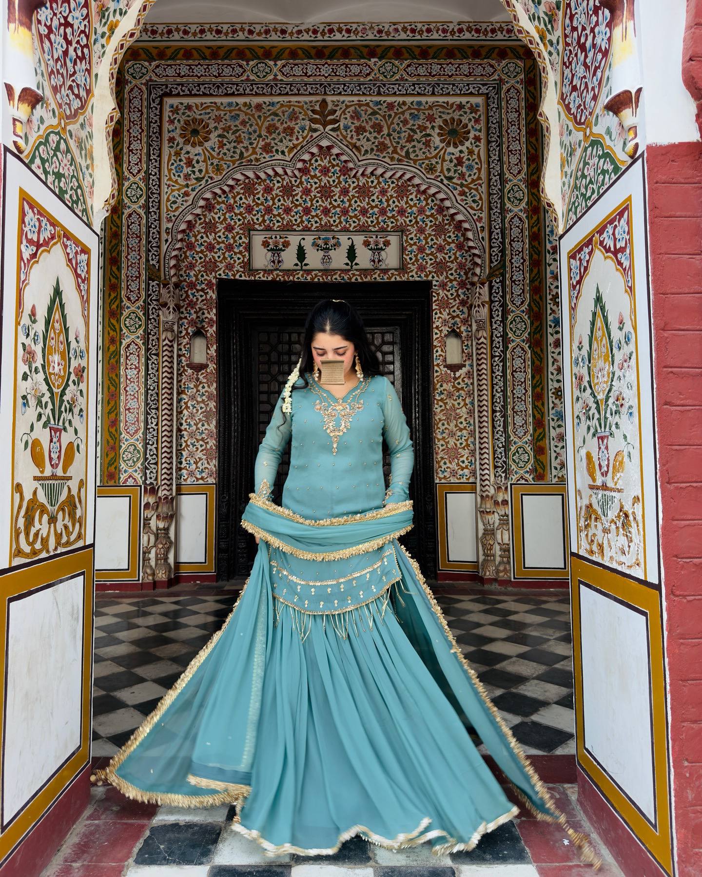 TOP FABRIC* : HAVY FOX GOARGATE WITH HAVY EMBROIDERY AND MOTI WORK