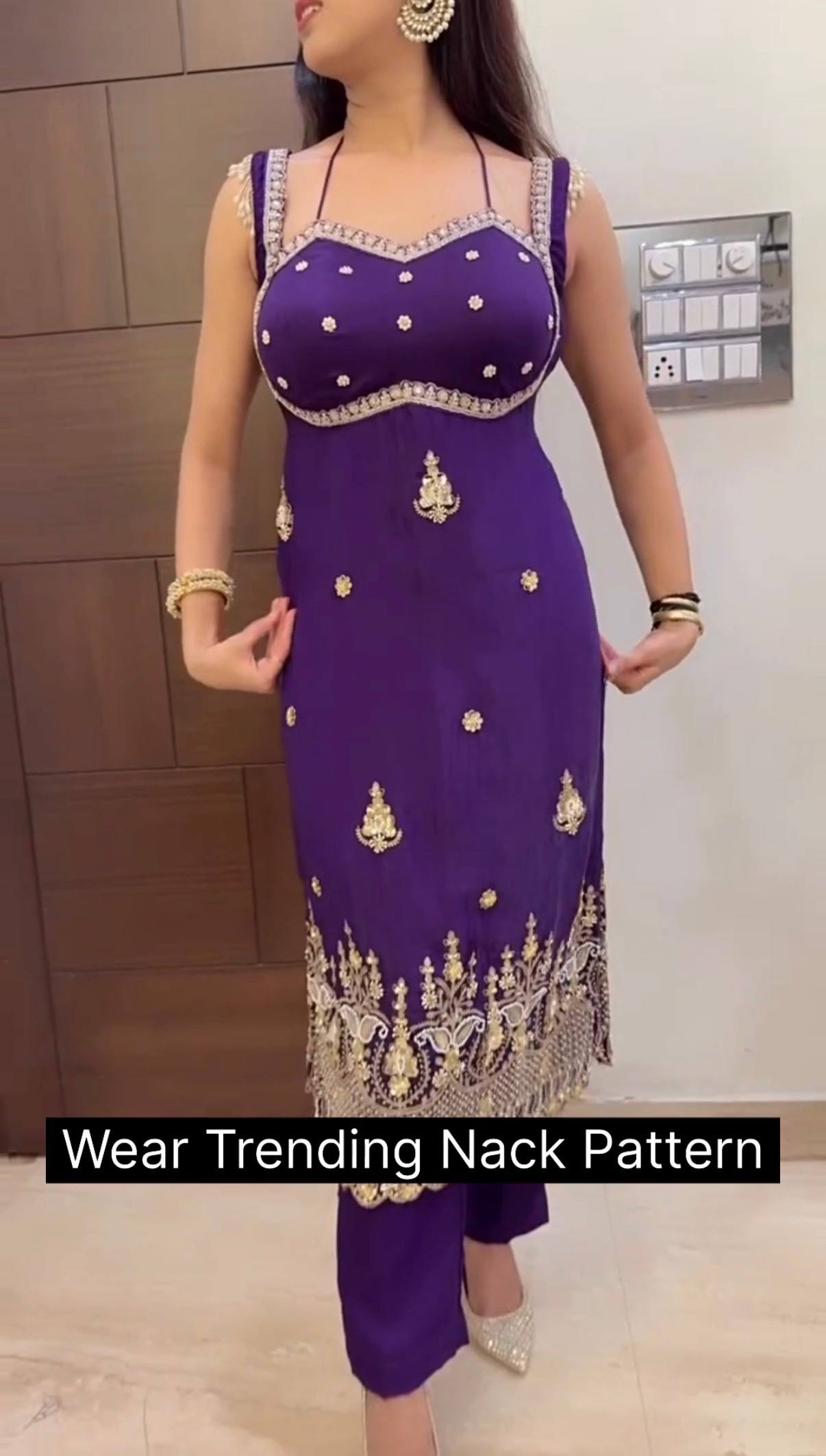๐น Work: Front Embroidery Work with Drawstring & Back Fancy Moti Lace Pattern